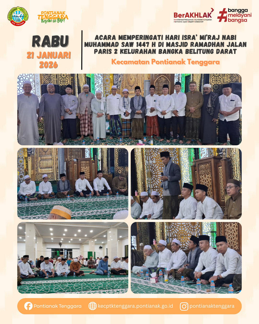 Acara Memperingati Hari Isra' Mi'Raj Nabi Muhammad SAW 1447H di Masjid Ramadhan Jalan Paris 2 Kelurahan Bangka Belitung Darat#pontianaktenggara#besehekitebise#berAKHLAK#banggamelayanibangsa