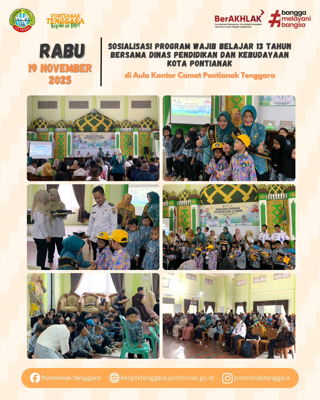 Rabu, 19 November 2025Sosialisasi Program Wajib Belajar 13 Tahun Bersama Dinas Pendidikan dan Kebudayaan Kota Pontianak#pontianaktenggara#BeseheKiteBise#ASNBerAKHLAK#banggamelayanibangsa